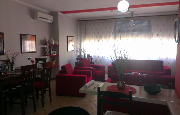 Very nice two bedrooms apartment is available for Sale, with a surface of 110sqm, situated in “Him Kolli”Street. The apartment is a new construction, based on the eighth floor with elevator, located very close to all amenities and it comprises of two bedrooms, a living room where kitchen with all needed appliances are included, one bathroom with shower and tiled floor and walls as well as two balconies. The apartment is equipped with document of the ownership, is totally furnished and it offers nonstop water and electricity supply, landline telephone and air conditioning for all rooms.